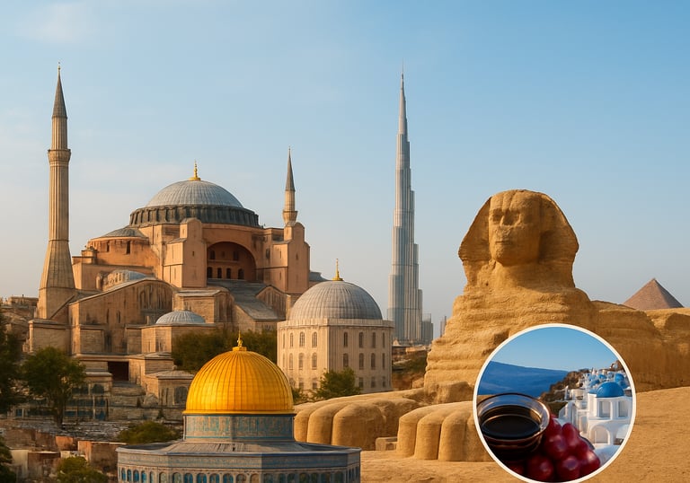 Embárcate en una aventura única con nuestros tours exclusivos a destinos fascinantes: Turquía, Israel, Dubái, Egipto y las encantadoras islas griegas. Además, déjate seducir por el mundo de los balsámicos, una experiencia sensorial que complementará tu viaje.